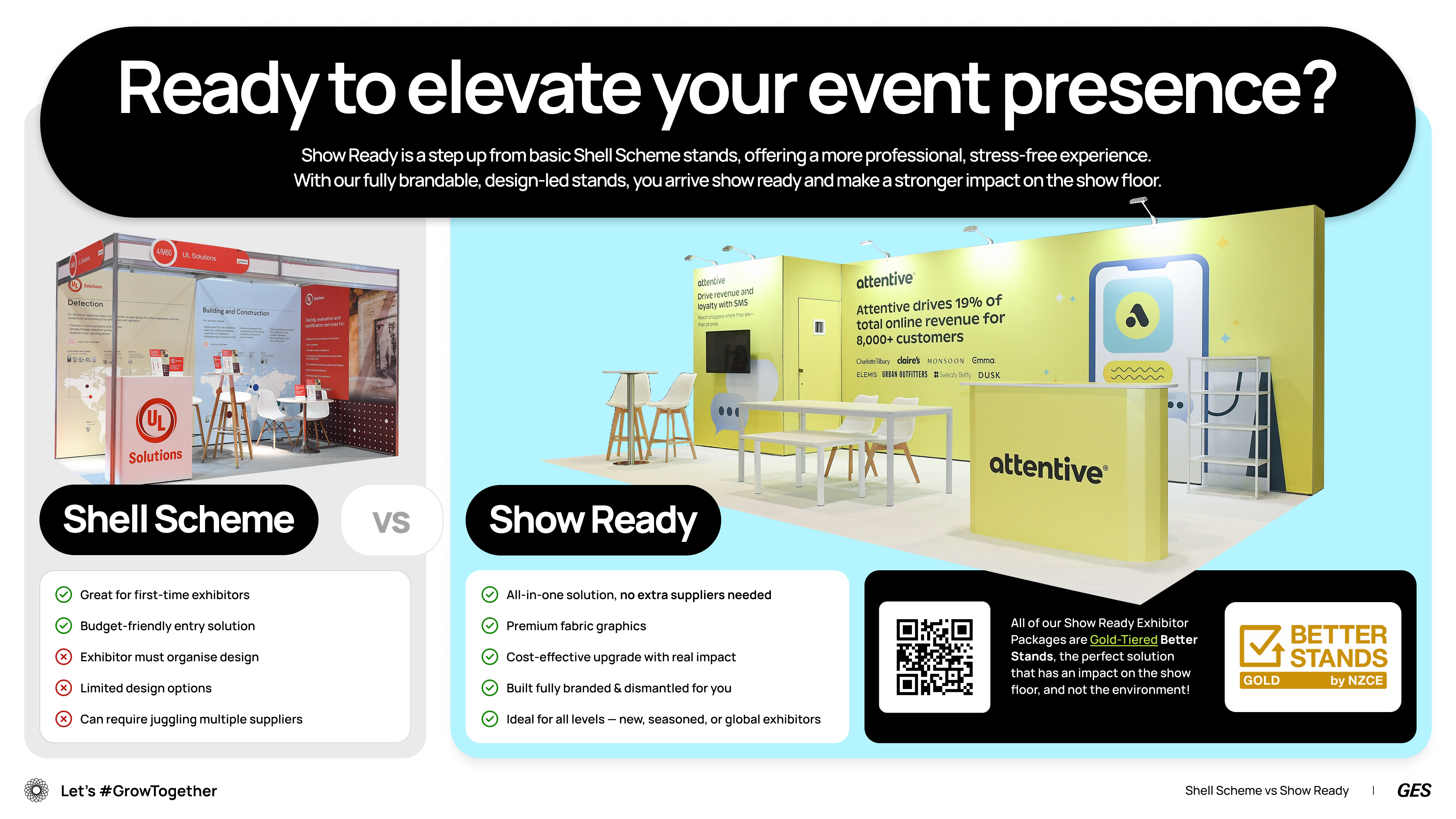 Equip your sales team to sell Show Ready Exhibitor Package upgrades with confidence. Download our infographic to include in your next sales presentation and, with a single-click, copy and share the destination URL to guide your exhibitors to more information on our stand packages.